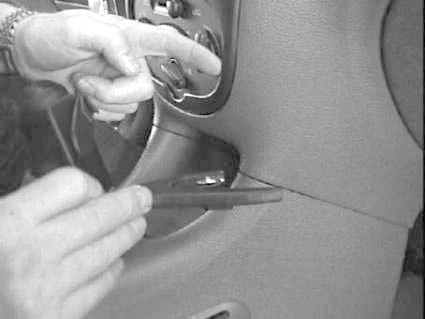 Pull the ProClip towards the steering wheel. Press the left part of the ProClip into the gap at pos 2 between the control panel and the surrounding frame.