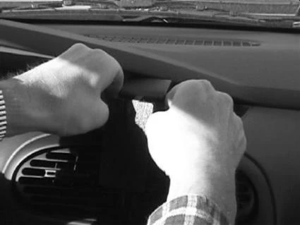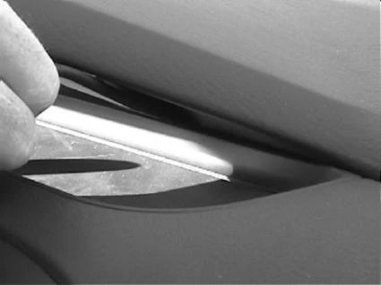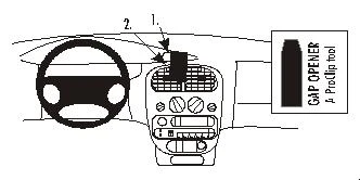 Press the thin end of the enclosed gap opener into the gap between the panel frame and the padded ledge (next to the ProClip) to widen the gap. Place your thumbs on each side of the ProClip and press firmly forward so the thin edge on the lower part of the ProClip goes into the gap next to the gap opener. Pull out the gap opener.