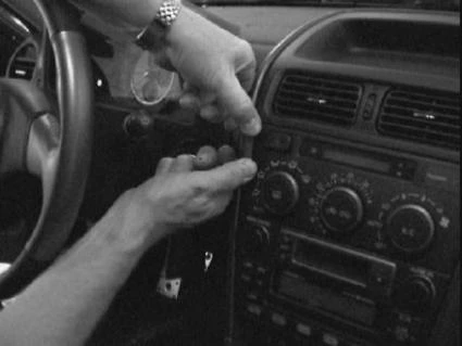 Bend Part 1 to the left so the angled edge of Part 1 hooks behind the center console panel frame and the adhesive sticks to the console edge.