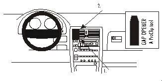 Press the thin end of the enclosed gap opener into the gap between the control panel and the frame surrounding the air vents, to widen the gap. Press the grooved edge on the lower part of the ProClip into the gap next to the gap opener. Pull out the gap opener.