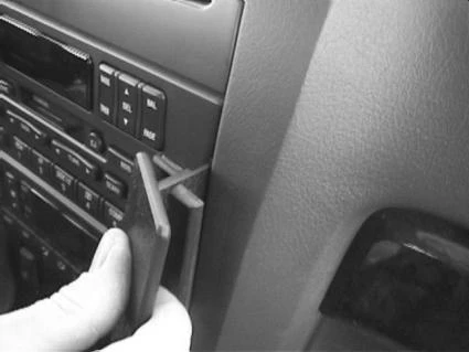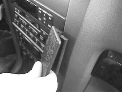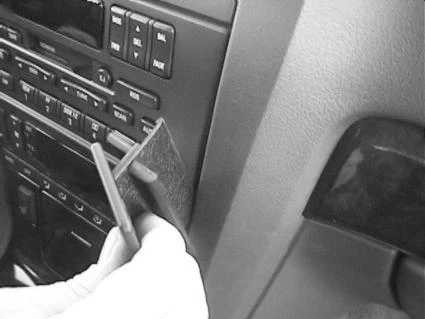 Press the grooved edge on the ProClip into the gap between the stereo panel frame and the padded console edge.