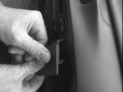 Press the left part of the ProClip, with adhesive tape, into the gap between the stereo and the surrounding panel.