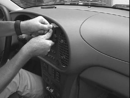 Press the thin end of the enclosed gap opener into the gap between the control panel and the dashboard to widen the gap. Press the upper part of the ProClip into the gap next to the gap opener. Pull out the gap opener.