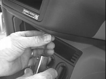 Press the grooved part of the ProClip into the gap at pos. 1 between the upper and the lower part of the control panel. Press forward on the ProClip until you see or hear/feel it snap into place.