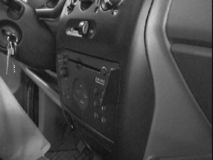Peel off the cover of the adhesive tape on Part 1. Press Part 1 into the gap between the stereo and the surrounding control panel.