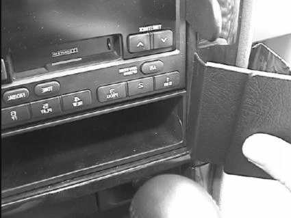 Hook the right part of the ProClip, with angle, into the gap between the frame surrounding the control panel and the dashboard.