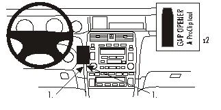 Press forward on the right side of the ProClip so the grooved edge on the right side of the ProClip goes into the gap between the padded part of the dashboard and the wood grain panel. Press until you see or hear/feel it snaps into place. Pull out the gap openers.