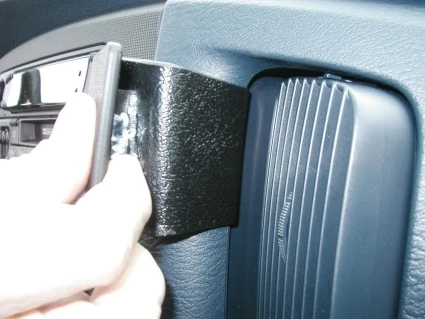 Press the thin edge on the left side of the ProClip into the gap between the panel frame surrounding the stereo and the padded part of the dashboard.