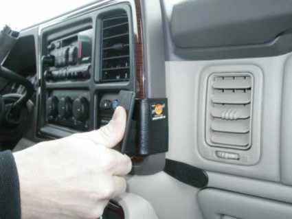 Press forward on the right side of the ProClip, towards the dashboard, so the angled edge snaps into the gap between the panel frame and the dashboard. (If the gap is tight or if you are attaching the ProClip according to picture #4, press the thin end of the enclosed gap opener into the gap to widen it)