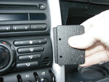 Place your hand on the right side of the ProClip face plate and press firmly left wards, towards the steering wheel, so it hooks over the console edge.