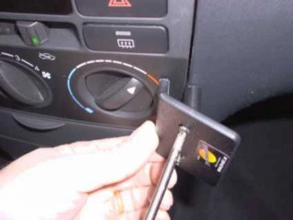 Press the thin end of the enclosed gap openers into the gap between the control panel and the dashboard to widen the gap.
