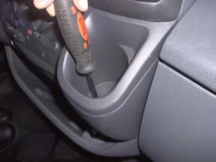 Pull the upper edge of the cup holder upwards. Press the upper part of the ProClip into the gap. Press down the upper edge of the cup holder. Tighten the screw.