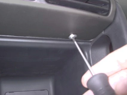Put the screw through the hole in the ProClip (hold it slightly angled) and into the hole in the panel and screw it all the way in.