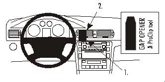 Press the lower part of the ProClip into the gap between the dashboard surrounding the air vents and the dashboard surrounding the control panel.