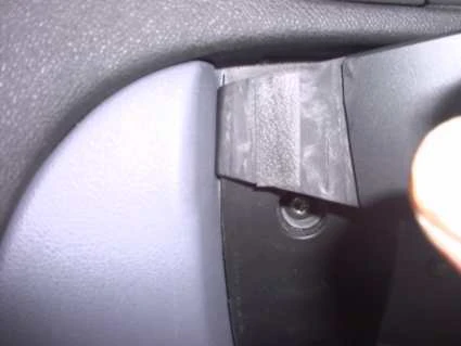 Open the glove compartment. Peel off the adhesive tape covers on the ProClip. Press the angled edge of the long right part of the ProClip into the gap between the glove compartment and the dashboard.