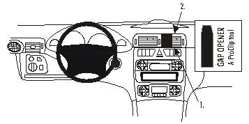 Hook the angled edge of the upper part of the ProClip into the gap next to the gap opener. Pull out the gap opener.