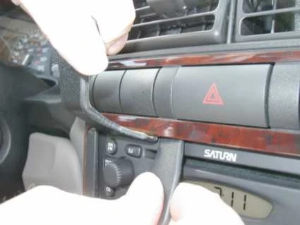 Press the thin end of the enclosed gap opener into the gap between air vent panel frame and the padded dashboard and push forward on the gap opener to bend the panel slightly outwards.