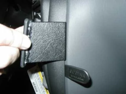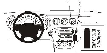 Press firmly forward on the right side of the ProClip so the angled edge snaps into the gap in the console sidewall above the gap opener. Pull out the gap opener.