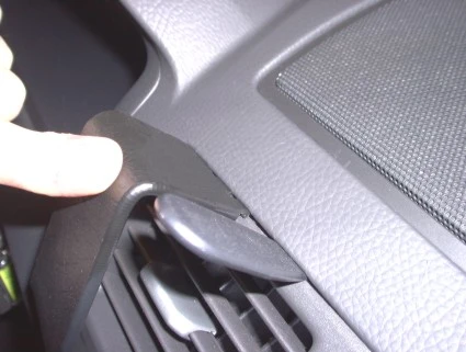 Press the gap opener into the gap between the dashboard and the frame surrounding the air vent. Press forwards on the upper part of the ProClip so it goes into the gap next to the gap opener. Pull out the gap opener. Pull the ProClip slightly left/rightwards so you feel it is properly in place.
