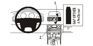 Press the gap opener into the gap between the dashboard and the frame surrounding the air vent. Press the lower part of the ProClip into the gap next to the gap opener. Pull out the gap opener.