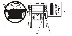 Press the gap openers into the gap between the control panel and the surrounding the frame, place one above and one below the ProClip. Press the left part of the ProClip into the gap between the gap openers. Pull out the gap openers.