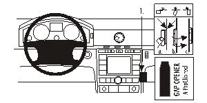 Press Part 1 rightwards, away from the steering wheel, so the angled edge hooks behind the control panel and the adhesive attaches to the dashboard. Pull out the gap opener.