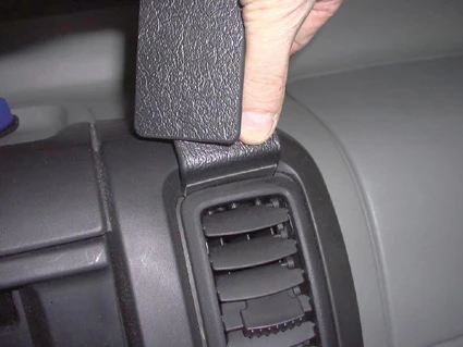 Press the lower part of the ProClip, with adhesive tape, into the gap between the dashboard and the air vent frame.