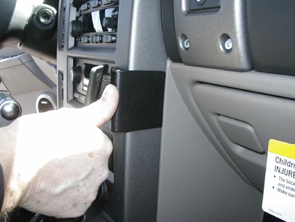 Press firmly forward on the right side of the ProClip so the angled edge goes into the gap in the center console sidewall. Press until you see or hear/feel it snaps into place.