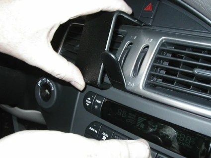 Press the thin end of the enclosed gap opener into the gap between the climate control and the air vent panel frame, to widen the gap.