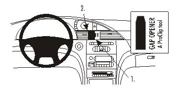 Press firmly forward on the upper part of the ProClip so the grooved edge goes into the gap between the dashboard ledge and the panel surrounding the clock. Press until you see or hear/feel it snaps into place.