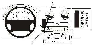 Press the gap opener into the gap to the right of the ProClip, between the control panel and the dashboard. Press the upper part of the ProClip into the gap next to the gap opener. Pull out the gap opener.