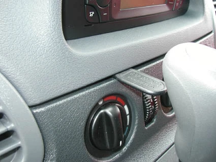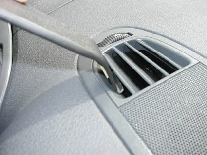 Place the angled edge on the upper part of the ProClip into the air vent. Flip the ProClip down, towards the gap opener, so the angled edge on the upper part of the ProClip hooks over the air vent bar.