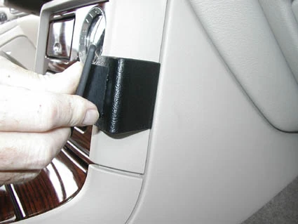 Press firmly forward on the right side of the ProClip so the angled edge on the right side snaps into the gap in the console sidewall.