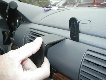 Press the gap opener into the gap between the air vent frame and the dashboard. Press forward on the upper part of he ProClip so the angled edge snaps into the gap next to the gap opener. Press down on top of the ProClip to make sure the angled edge is all the way into the gap. Pull out the gap opener.