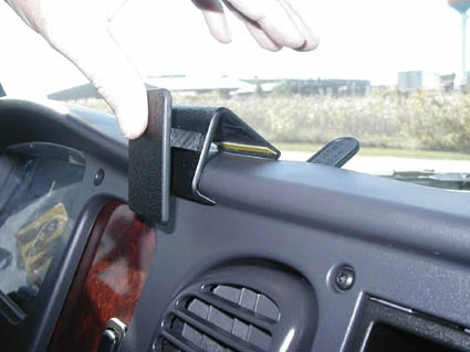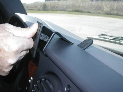 Press the thin end of the enclosed gap opener into the gap on top of the dashboard, to widen the gap. Peel off the cover of the adhesive tape on the ProClip.