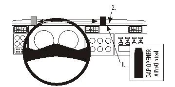 Press the thin end of the enclosed gap opener into the gap between the dashboard and the padded edge, to widen the gap. Peel off the cover of the adhesive tape on the ProClip.