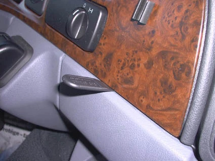 Press the thin end of the enclosed gap opener into the gap between the control panel and the dashboard, to widen the gap. Peel off the adhesive tape covers on the ProClip.
