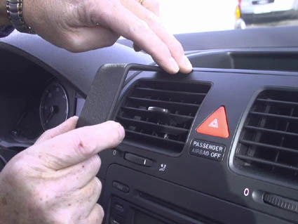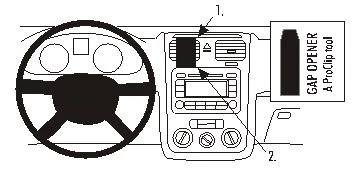 Press the gap opener into the gap between the air vent frame and the stereo/navigation system. Press the grooved edge on the lower part of the ProClip into the gap next to the gap opener. Pull out the gap opener.