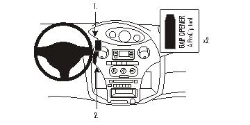 Pull the ProClip downwards and hook the angled edge on the lower part of the ProClip under the edge of the dashboard, as far to the left as possible. Pull out the gap openers.