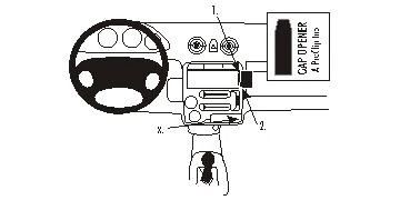 Open the ashtray. Loosen the screw to the right of the ashtray. Press the thin end of the enclosed gap opener into the gap between the frame surrounding the control panel and the dashboard to widen the gap. Peel off the adhesive tape covers on the ProClip.