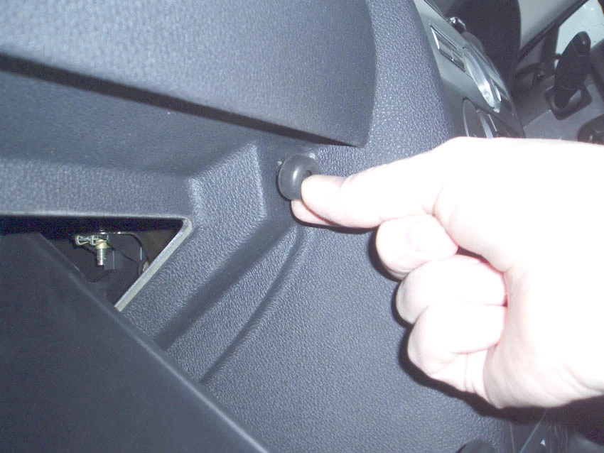Open the glove compartment. Remove the rubber-detail, as shown in the picture. Peel off the adhesive tape covers on the ProClip.