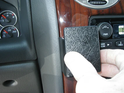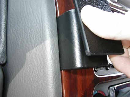 Press firmly forward on the upper part of the ProClip so the grooved edge goes into the gap between the console edge and the center console panel frame. Press until you see or hear/feel it snaps onto place.