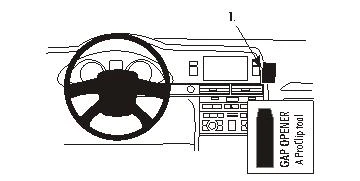 Press the thin end of the enclosed gap opener into the gap between the control panel and the dashboard, to widen the gap. Peel off the cover of the adhesive tape on the ProClip. Place the grooved edge of the ProClip into the gap below the gap opener.