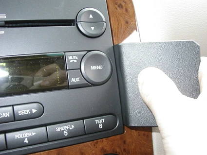 Press the grooved edge on the left side of the ProClip into the gap between the stereo and the surrounding panel frame.