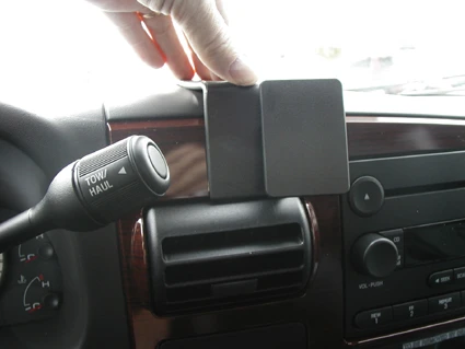 Hook the angled edge on the upper part of the ProClip into the gap between the two panel sections on the dashboard.