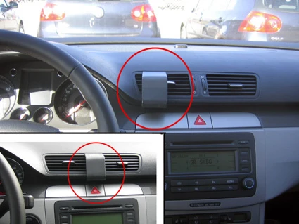 Hook the lower part of the ProClip, with adhesive tape, under the edge of the dashboard surrounding the air vent.