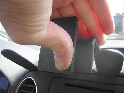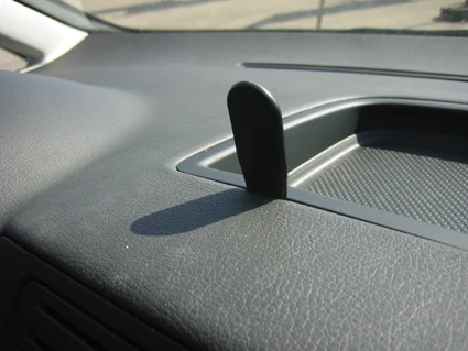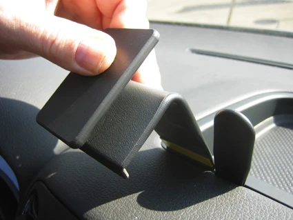 Press the thin end of one of the enclosed gap openers into the gap between the frame surrounding the coin compartment and the dashboard, to widen the gap. Peel off the adhesive tape covers on the ProClip.