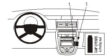 Press the thin end of the enclosed gap opener into the gap between the stereo and the surrounding frame, to widen the gap. Peel off the cover of the adhesive tape on the ProClip.