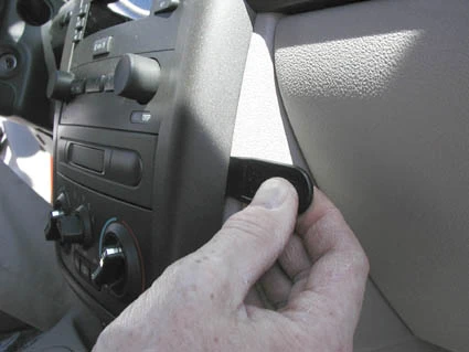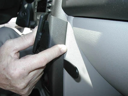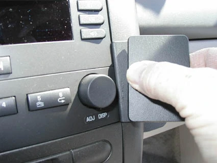 Press the angled edge on the left side of the ProClip into the gap between the stereo and the console edge.
