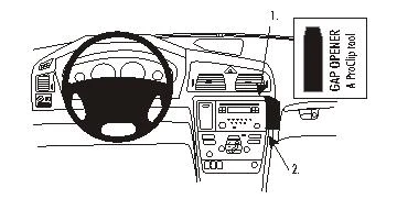 Press the gap opener into the gap between the frame surrounding the control panel and the dashboard. Press forwards on the lower part of the ProClip so the grooved edge snaps into the gap above the gap opener. Pull out the gap opener.